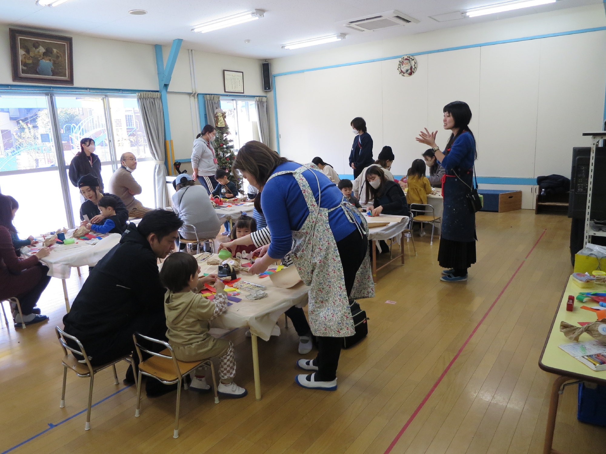 ナースリーでは母子分離を目的とするものではなく、ご家族の方と一緒に幼稚園に来て、幼稚園が楽しい所と安心して幼稚園の生活に慣れて頂ける教室です。